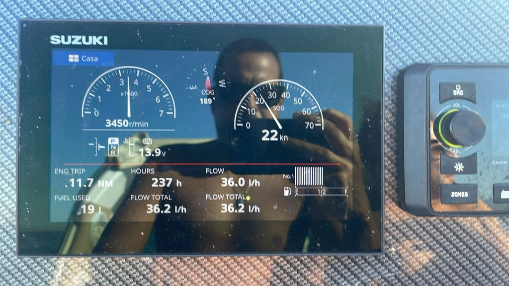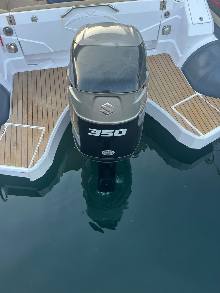Suzuki 350 pk 4 takt EFI met brandstof injectie, powertrim, elektrisch gestart, drive-by-wire.